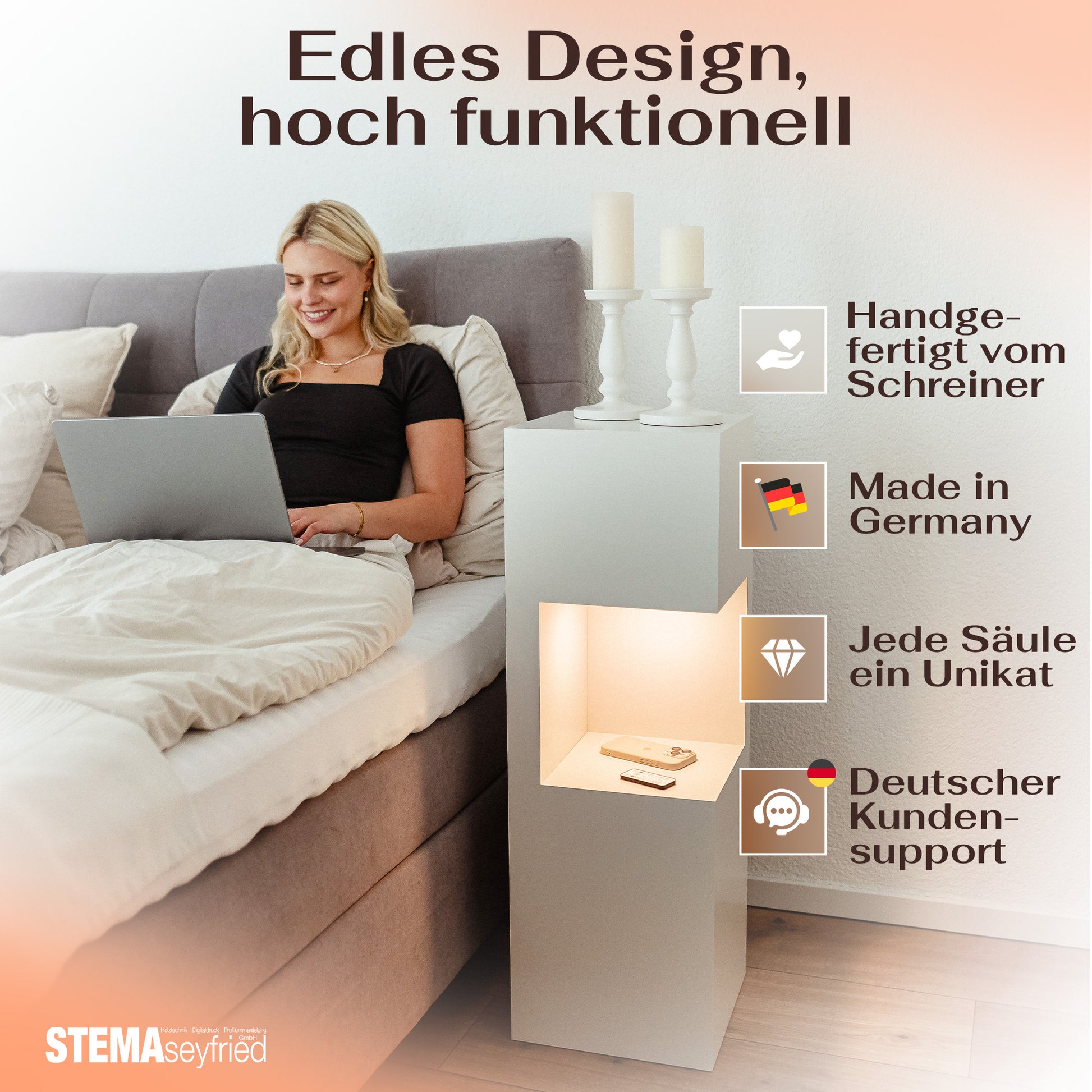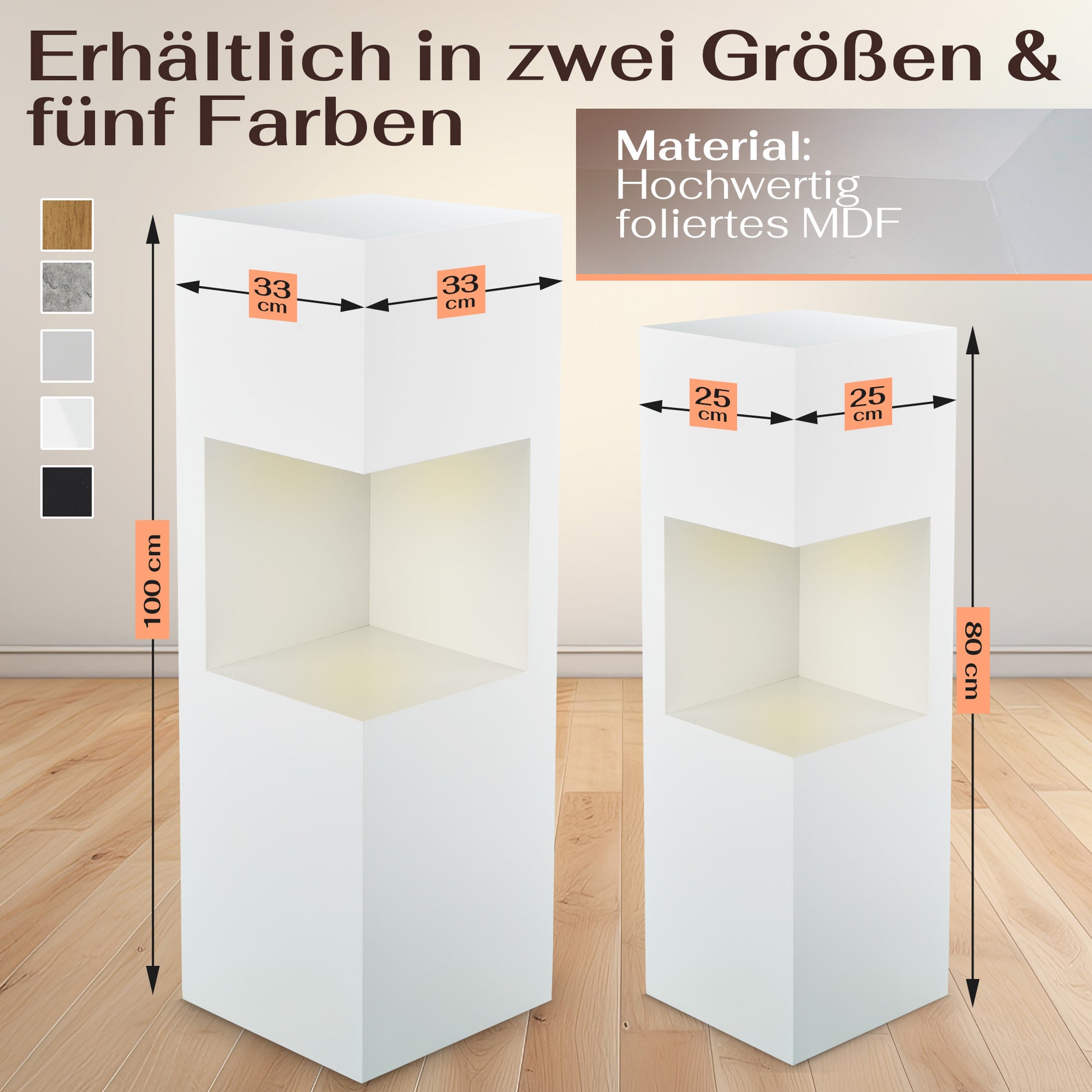 - 🪵 Hochwertige Optik, modernes Design: Robuste Dekosäule aus foliertem MDF – klare Linien, wertige Oberfläche, dekorative Ablagefläche oben. Kein billiges Wegwerfprodukt.