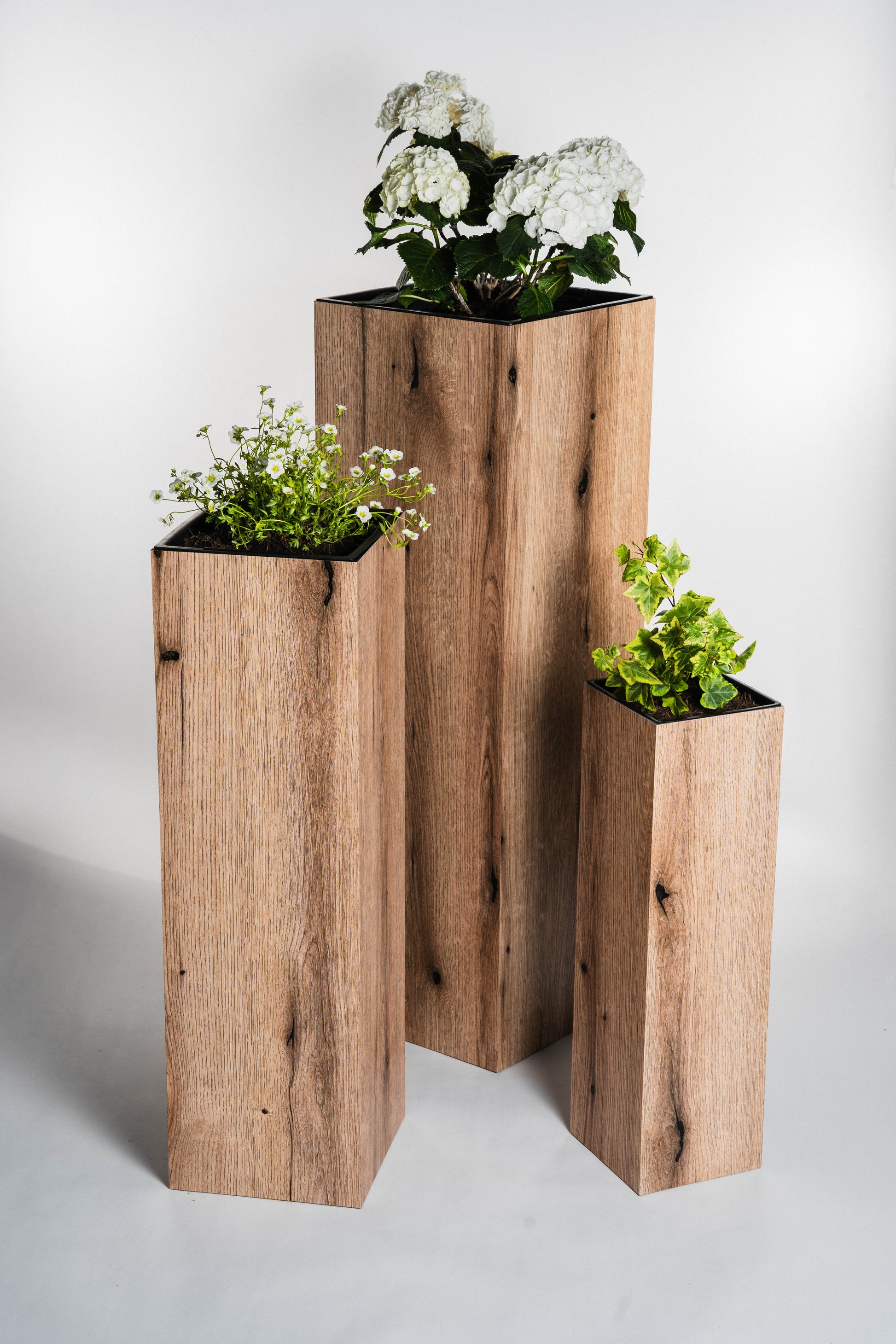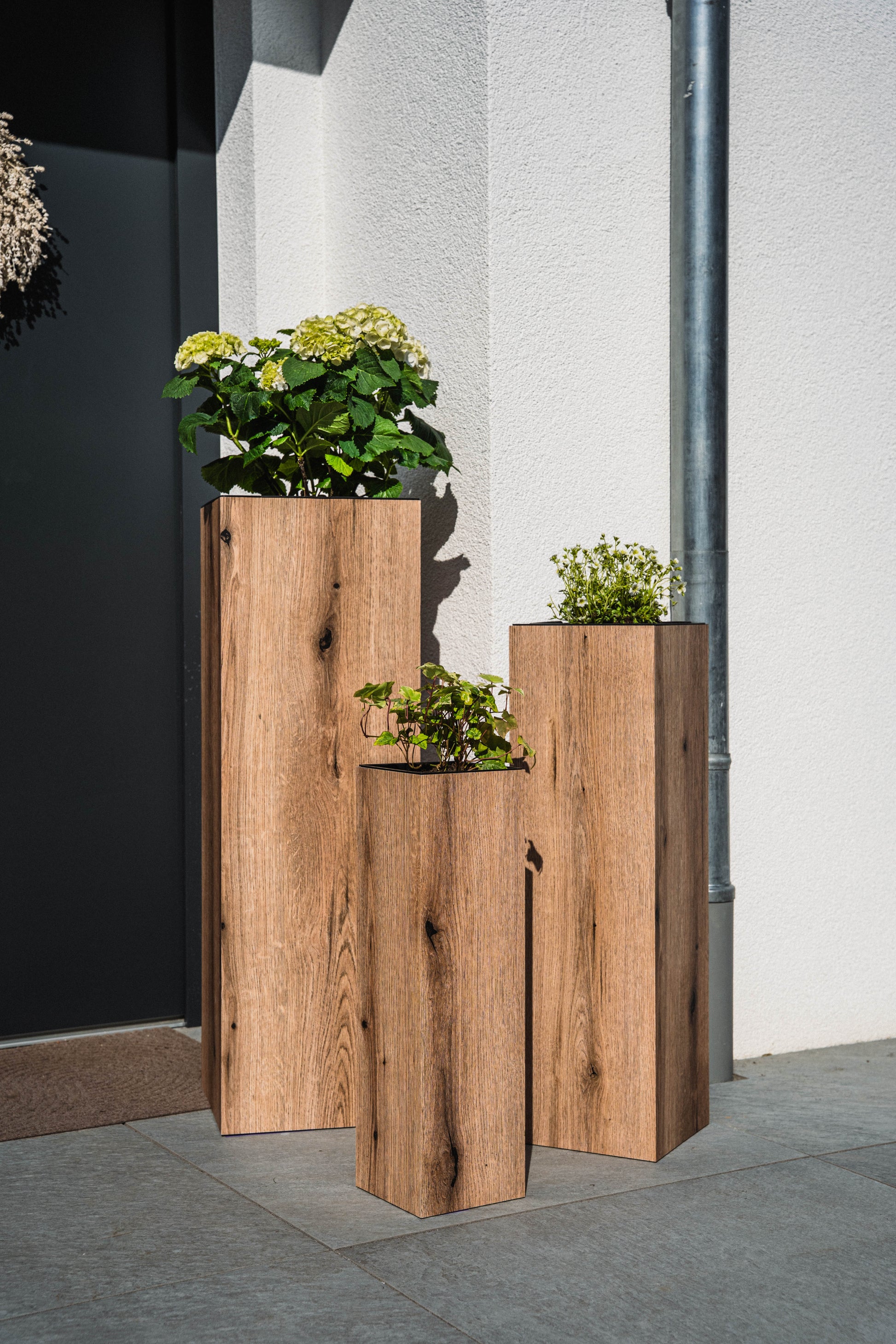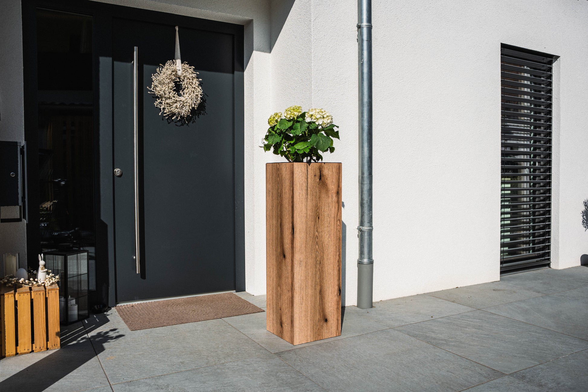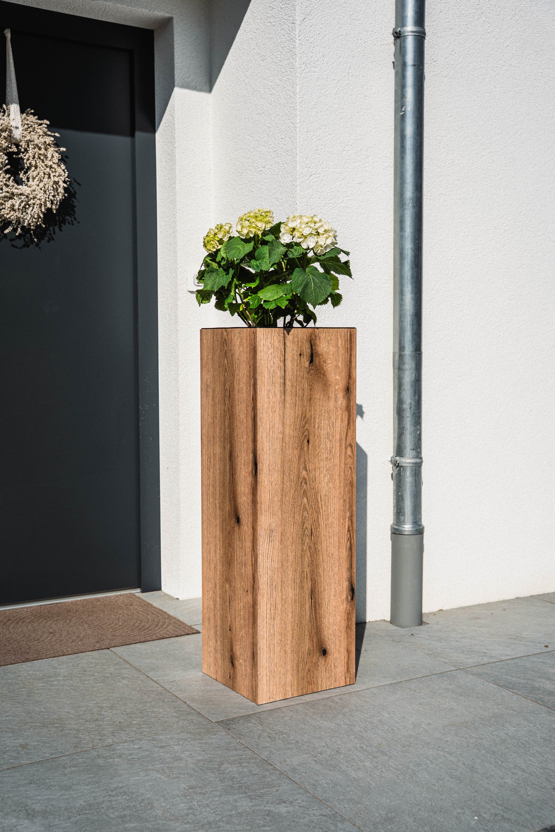 Blumensäule wetterfest in der Farbe Eiche - 3 Größen zur Auswahl